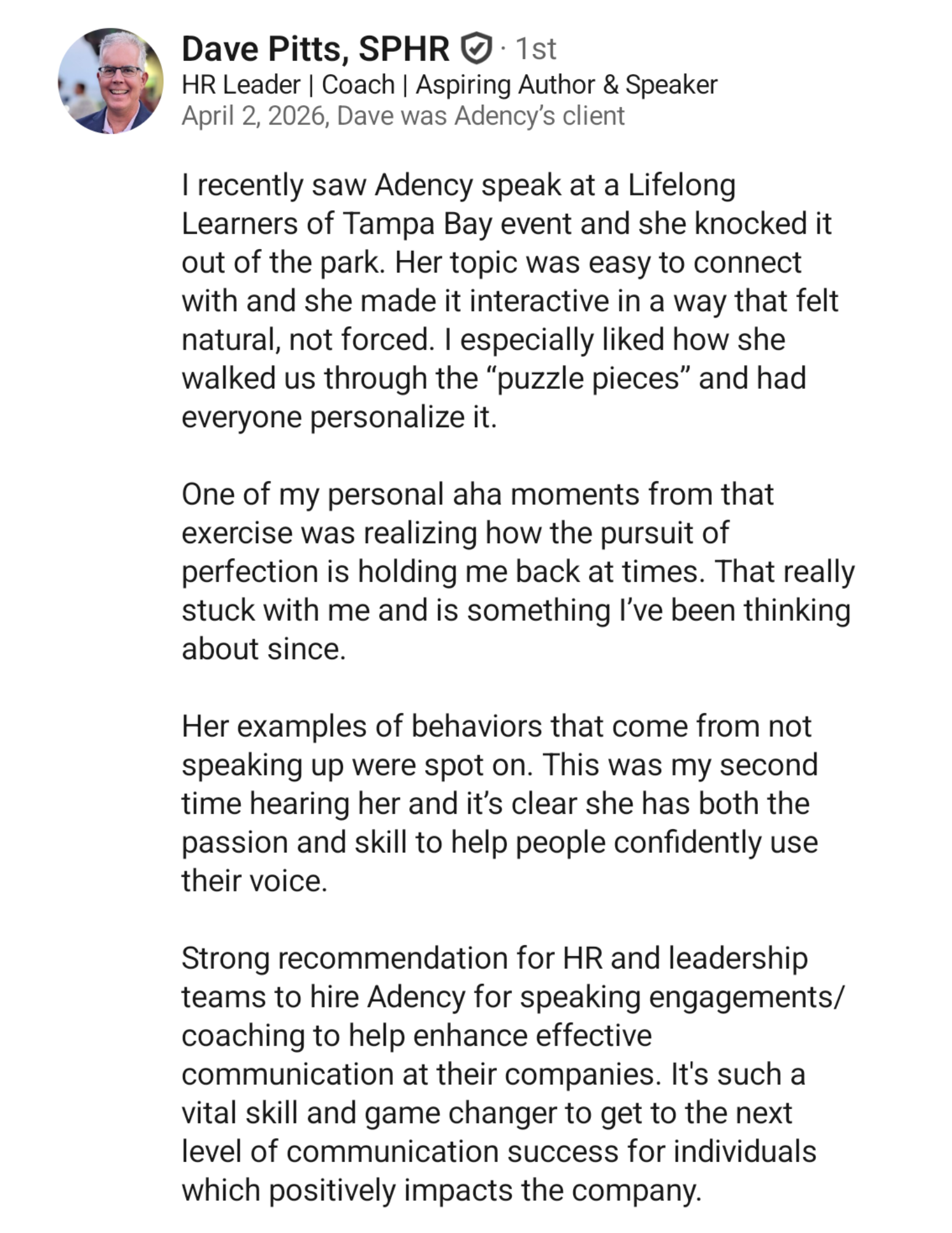 After hearing Adency speak your audience will have the tools they need to: